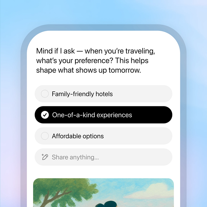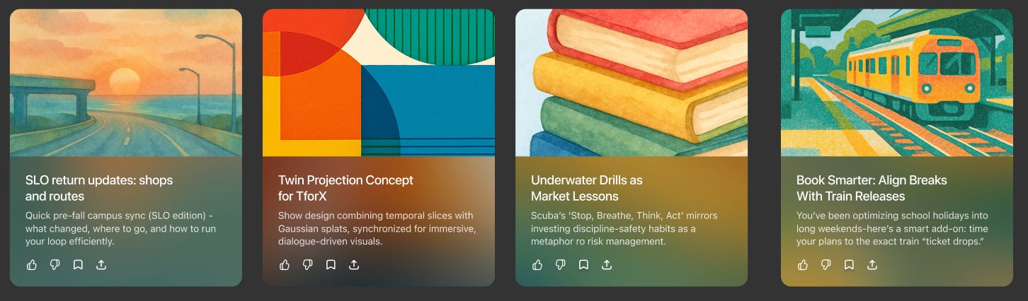 Hereās the cool part. While youāre sleeping, ChatGPT is busy researching things you care about. Then when you wake up, boom! You get a neat little morning briefing with colorful cards showing all the important updates.