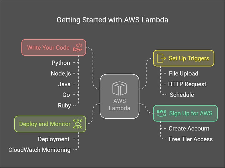 Ready to dive in? Getting started with AWS Lambda is easier than you might think. Here’s a quick roadmap: